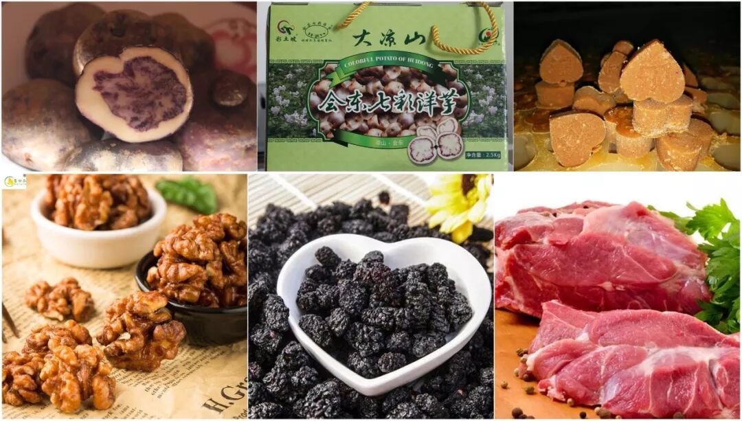 野猪肉、黑猪肉、生态阉鸡、大红袍花椒、燕麦粉、苦荞粉、彝家酸菜、核桃